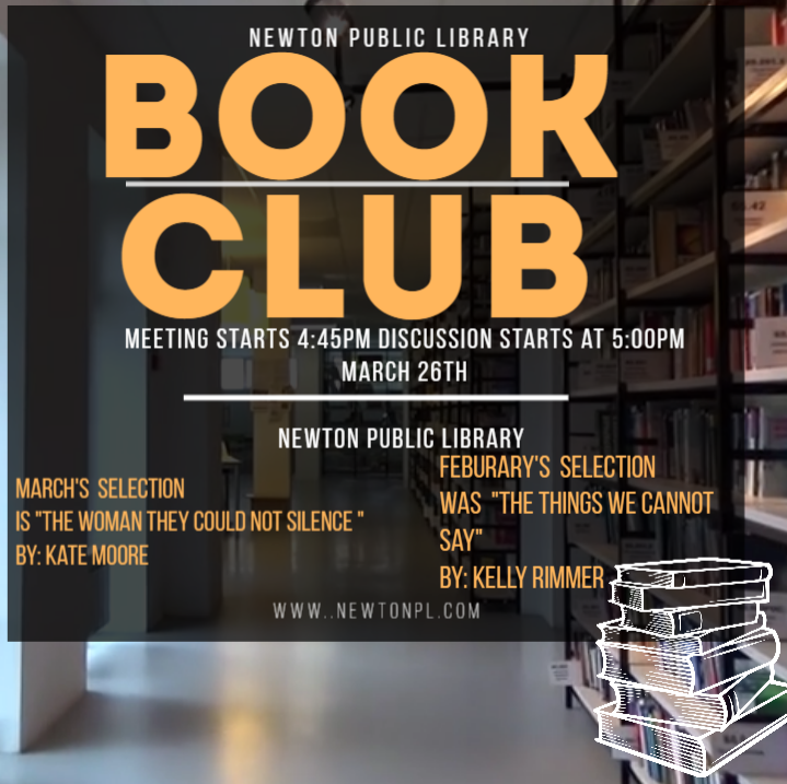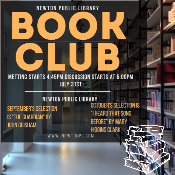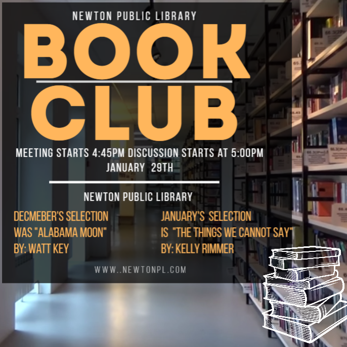 Join us at the Newton Public Library for book club! Every 3rd Thursday, meeting starts at 4:45pm, discussion starts at 5:00pm.